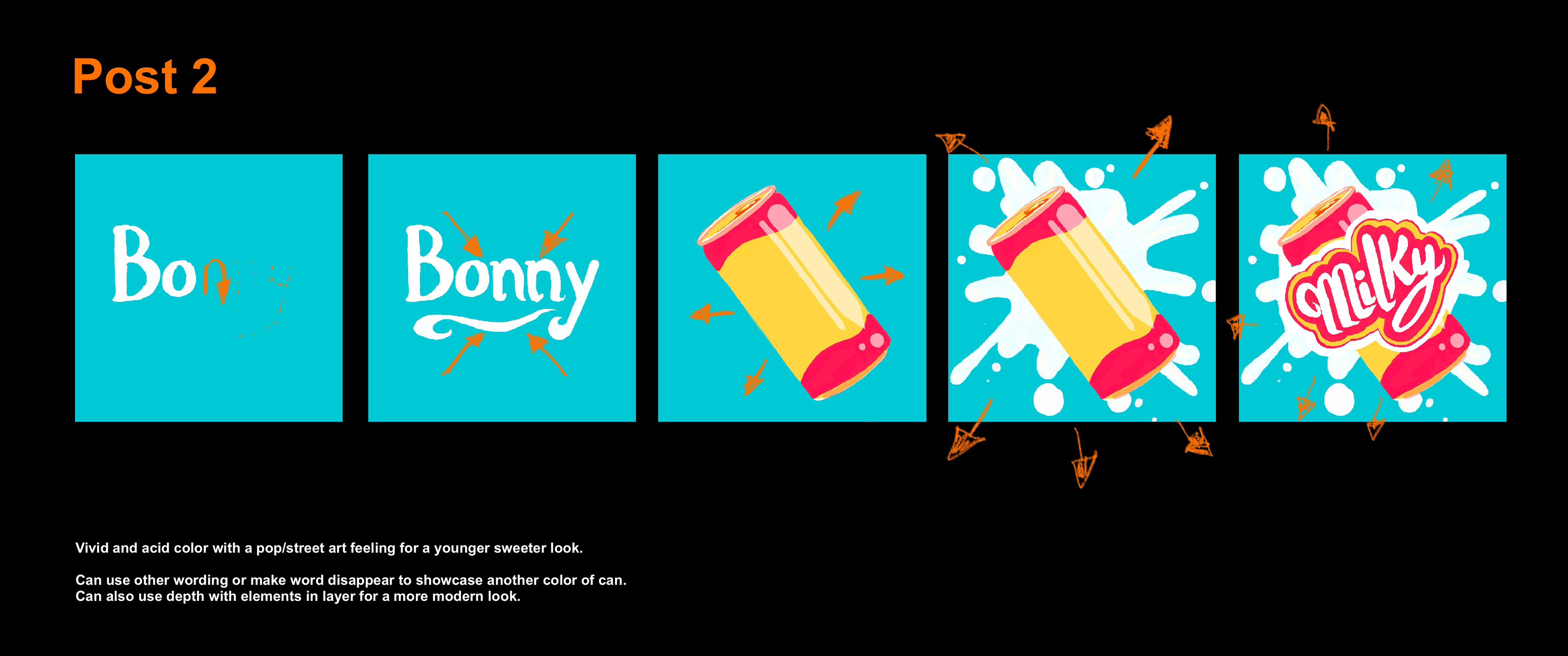 A social media campaign created for Bonny, the german milk brand. These posts are created at a rhythm of 4 to 6 per month, from storyboard to final.