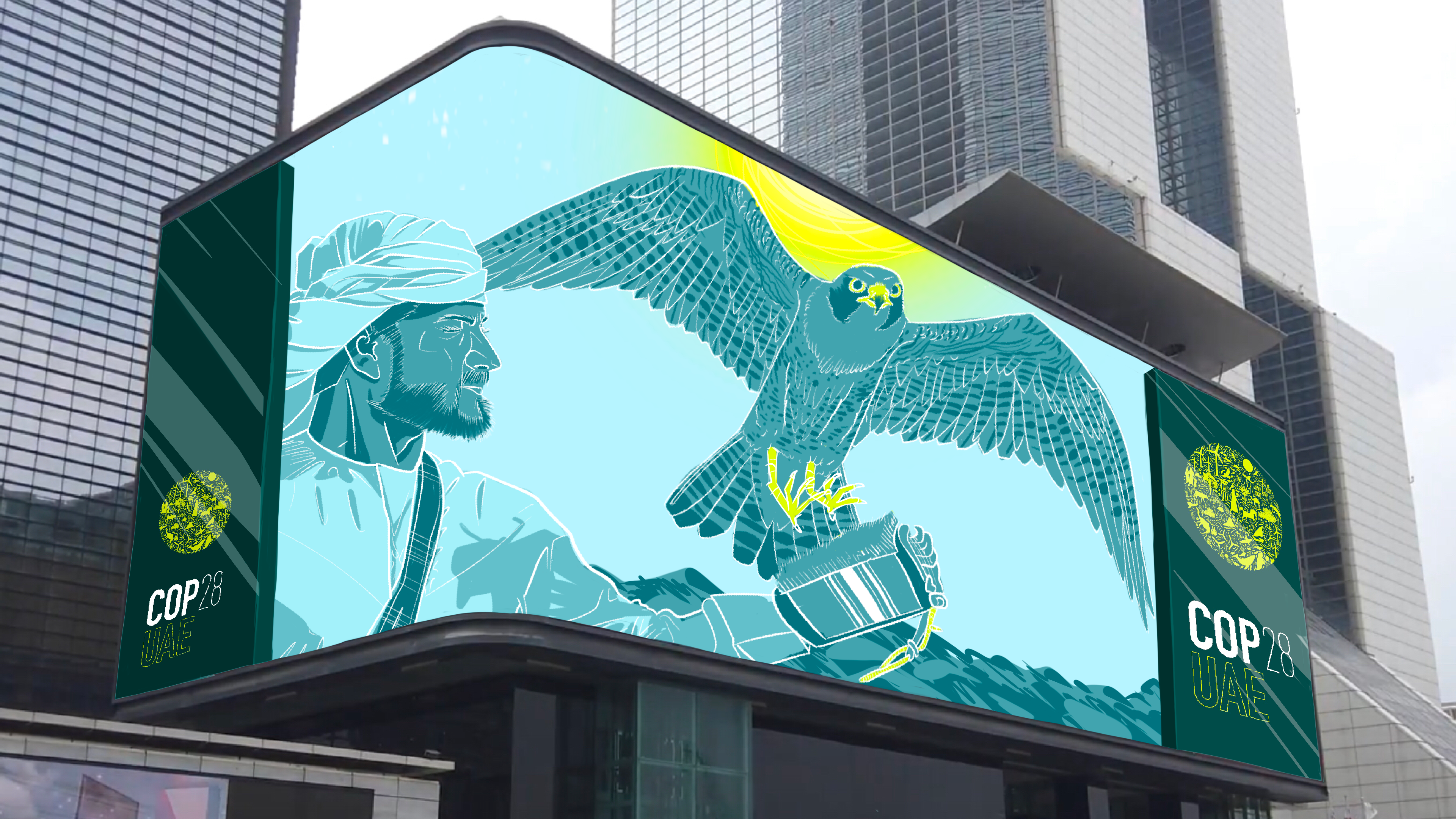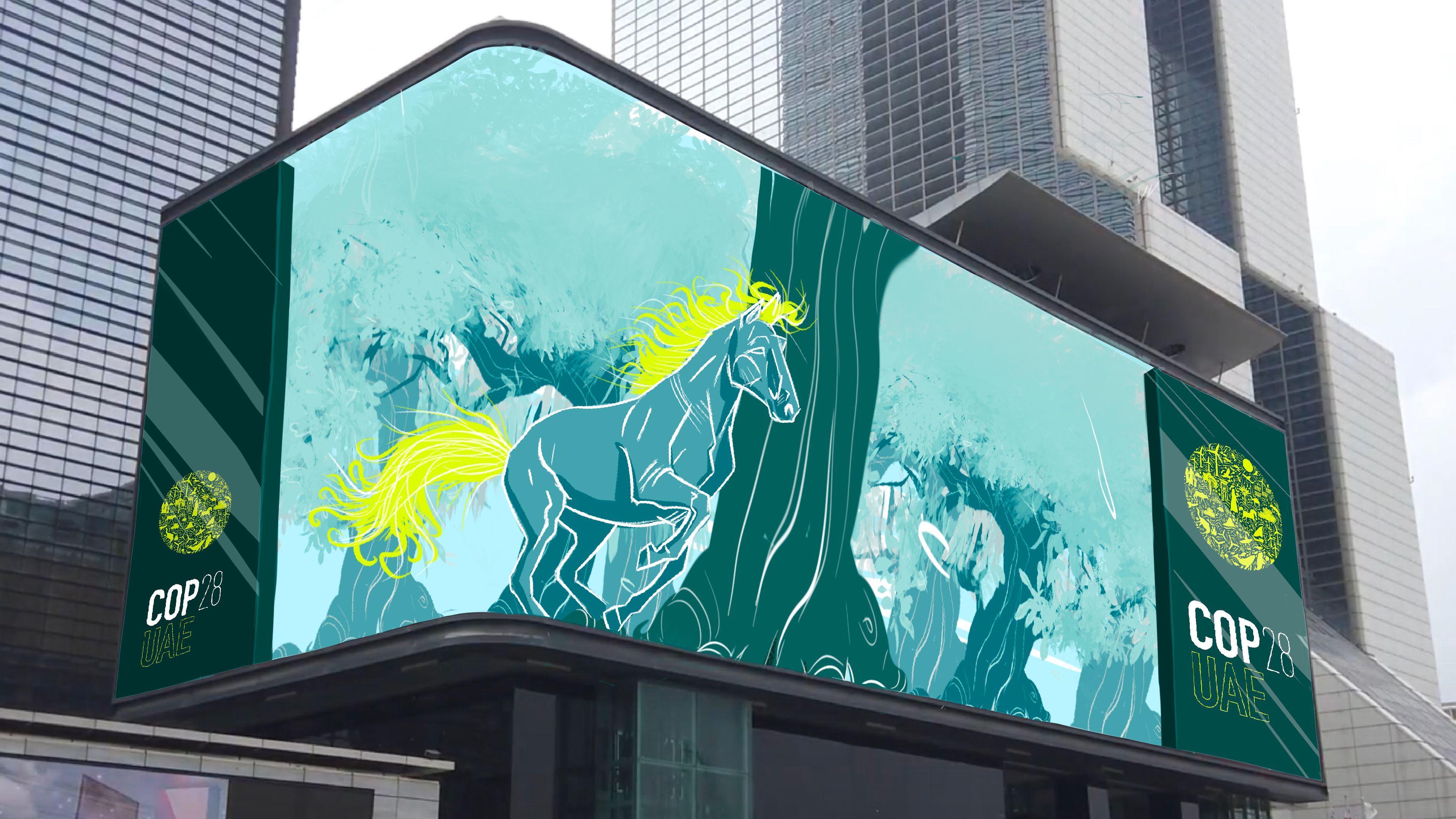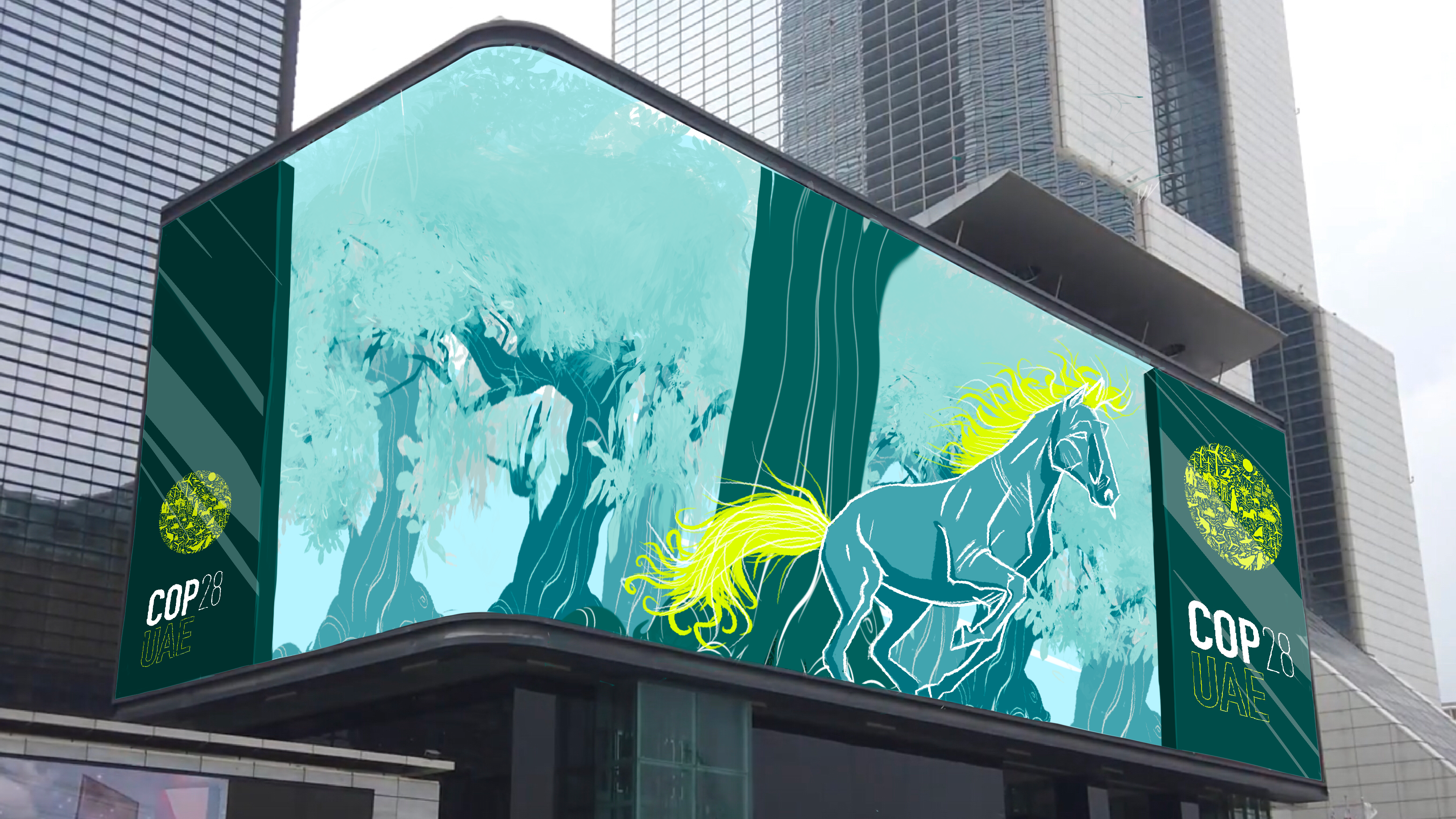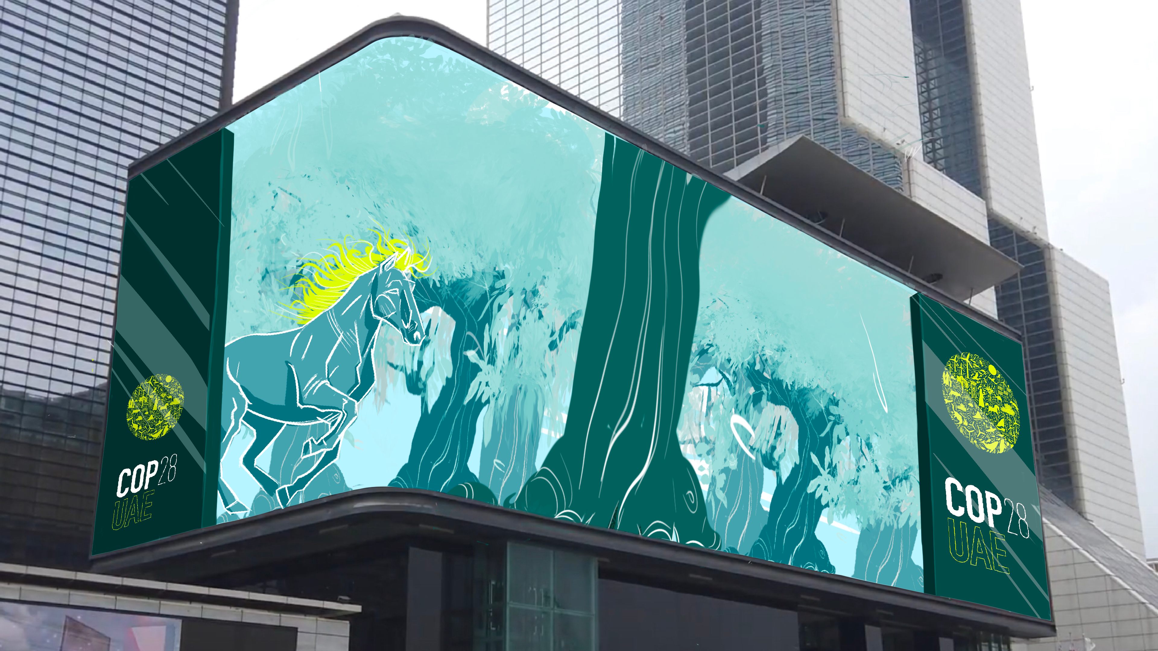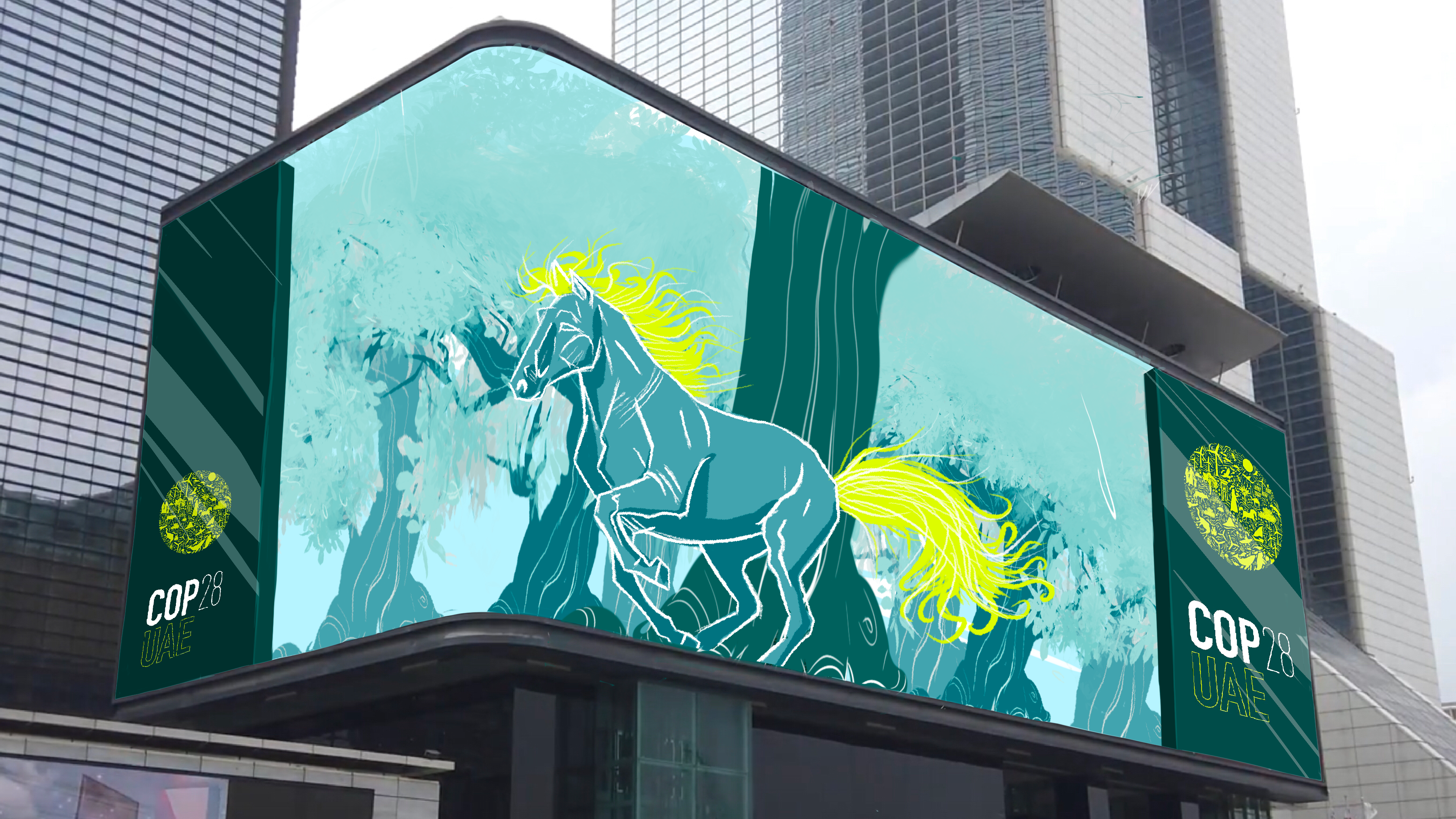 Here is the storyboard i made for an anamorphic screen ordered by COP 28 in Dubai. Made with procreate.